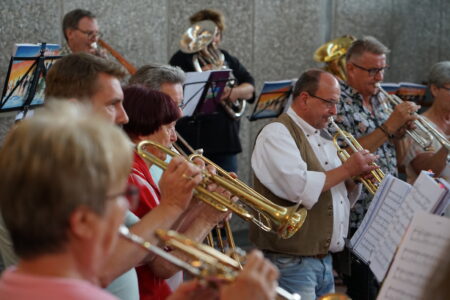Mitglieder des Chores „Schöne Stimmen“ wechselten sich mit der Gemeinde ab und begleiteten die Gemeinde beim Gesang.