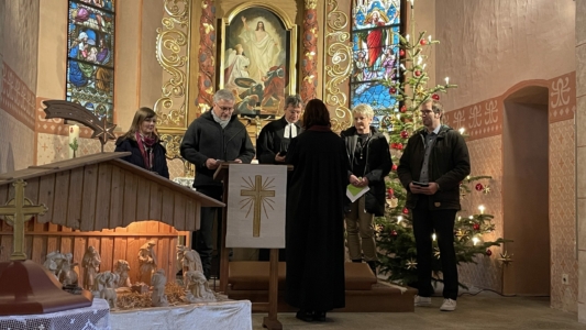 Ein Willkommen in den Gemeinden Leupoldsgrün und Joditz, für die Frau Coppes in der Seelsorge tätig sein wird, sowie als Mitglied des Teams der Hauptamtlichen im Dekanat sprachen Karin Hertkorn (Vertrauensfrau Joditz), Ulrich Hammerbacher (Vertrauensmann Leupoldsgrün) und Pfarrer Michael Grell (Stellv. Senior).