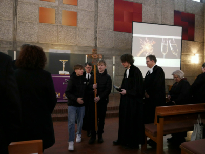 Mit einem festlichen Gottesdienst wurde am 2. Adventssonntag die Pfarreigründung kreuz.4 begangen. Kirchenvorsteherinnen und Kirchenvorsteher zogen mit den Geistlichen feierlich in die Hofer Kreuzkirche ein und feierten mit Gästen aus allen vier Gemeinden. Pfarrer Dr. Westerhoff begrüßte auch die anwesenden Ehrengäste, darunter Oberbürgermeisterin Eva Döhla, Landrat Oliver Bär, Bürgermeisterin und stellv. Landrätin Annika Popp (Leupoldsgrün) sowie Bürgermeister Matthias Beyer (Köditz) und seinen Stellvertreter Reinhold Frank (Joditz).
