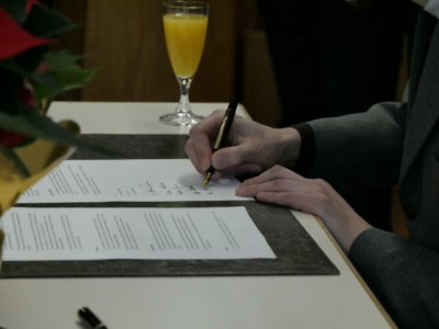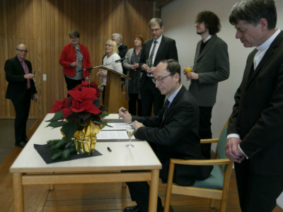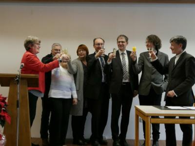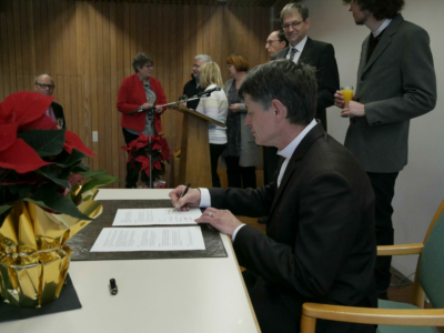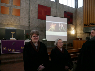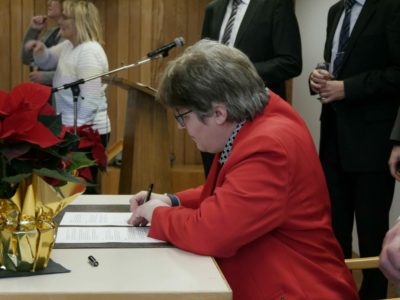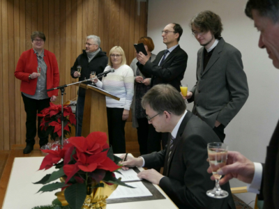 Beim anschließenden festlichen Empfang im Gemeindesaal der Kreuzkirche wurde zunächst von den Geistlichen und den Vertrauensleuten der vier Gemeinden der ausgearbeitete und beschlossene Kooperationsvertrag miteinander unterzeichnet.