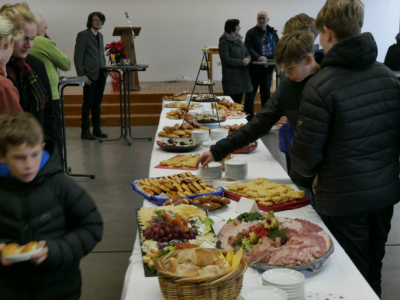 Bei einem reichhaltigen und vielfältig gestalteten Buffet konnten die Gäste noch miteinander ins Gespräch kommen und auf die neue Pfarrei kreuz.4 anstoßen.