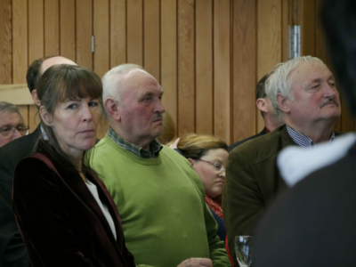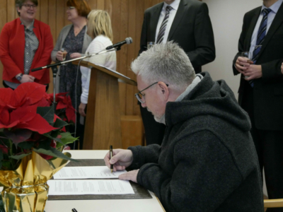 Oberbürgermeisterin Eva Döhla überbrachte die Grüße der Stadt Hof. Sie würdigte den Zusammenschluss, der über die Stadtgrenzen hinaus reiche und so eine gute Verbindung zwischen Stadt und Land suche, ganz im Sinne der neuen Werbeaktion „Hofer Land“. Landrat Dr. Oliver Bär lobte das ehrenamtliche Engagement in den Gemeinden und die gute Musik und wünschte den Beteiligten Gemeinden ein gutes Händchen bei dem, was in Zukunft gemeinsam zu gestalten ist. Er ließ es sich nicht entgehen, scherzhaft zu bemerken, dass er eine solche feierliche Unterzeichnung wie eben eher von der UNO oder aus Brüssel kenne als in kommunalen Bezügen. Bürgermeisterin Annika Popp (Leupoldsgrün) überbrachte die Glückwünsche der Gemeinde Leupoldsgrün zu dem Zusammenschluss und zeigte sich zuversichtlich, dass aus der Zusammenarbeit etwas Gutes wachsen kann. Bürgermeister Matthias Beyer (Köditz und Joditz) meinte, er müsse etwas Wasser in den Wein gießen, sei doch mit dem Zusammenschluss auch der Wegfall einer Pfarrstelle, nämlich der in Joditz, verbunden. Dennoch würdigte auch er, dass sich die Beteiligten nicht in eine Protest- oder Verweigerungshaltung begeben hätten, sondern aktiv die Spielräume genutzt haben, die ihnen jetzt zur Verfügung standen.