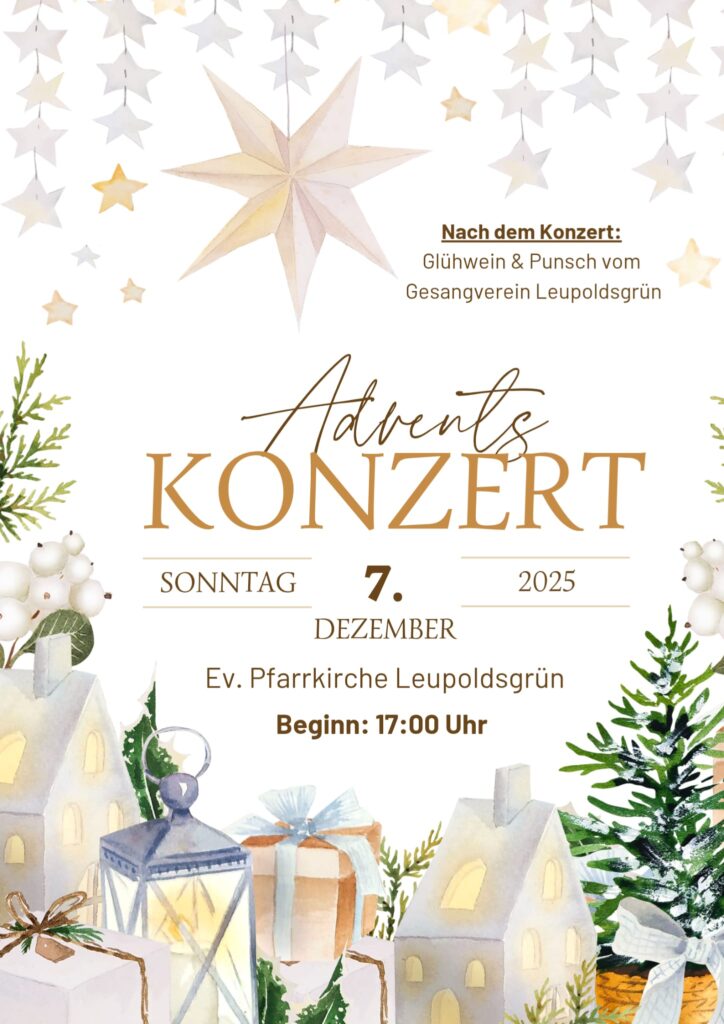 Am 2. Advent, den 7. Dezember, findet um 17 Uhr wieder unser Adventskonzert in der Leupoldsgrüner Kirche statt.
