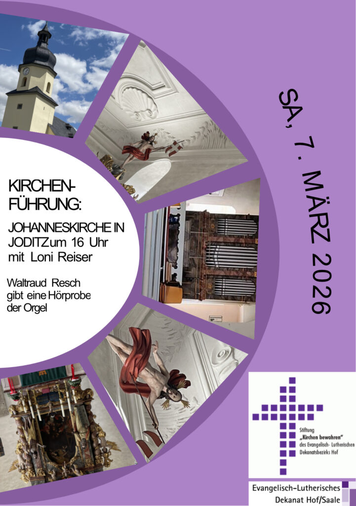 Die Stiftung Kirchen bewahren lädt zu einer Kirchenführung mit Loni Reiser am 7. März um 16 Uhr in die Johanneskirche Joditz.