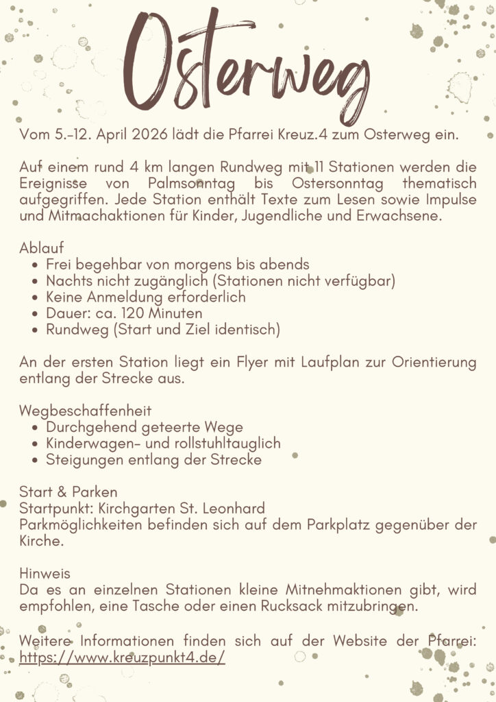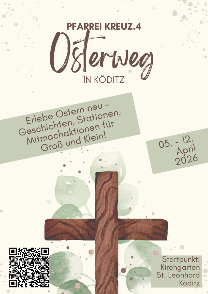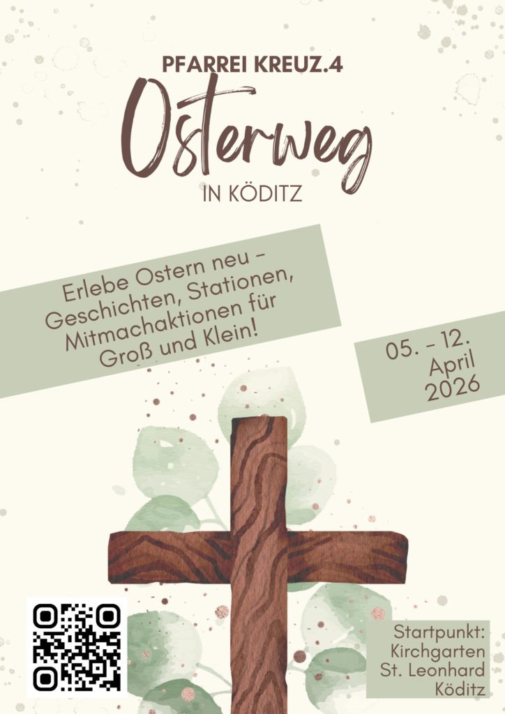 Auch in diesem Jahr lädt die Pfarrei wieder herzlich zum Osterweg durch Köditz ein – ein Spaziergang, der die Ostergeschichte lebendig macht.